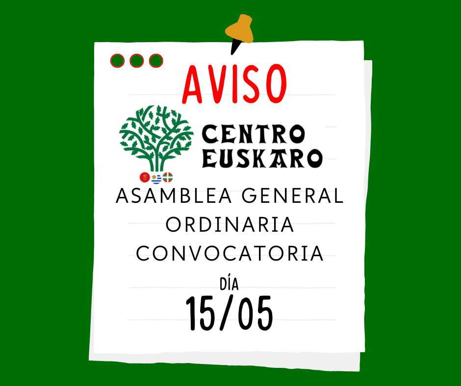Esperamos contar con su presencia y entusiasta participación en la Asamblea General Ordinaria. Juntos, podemos seguir construyendo un Centro Euskaro más fuerte y unido.
