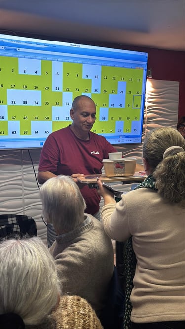 La atmósfera vibrante del bingo se complementó con un delicioso chocolate caliente acompañado de masitas y sándwiches, que fueron el deleite de todos los asistentes. Estamos realmente agradecidos de contar con el apoyo de nuestros colaboradores, quienes hicieron posible que este evento fuera tan memorable.